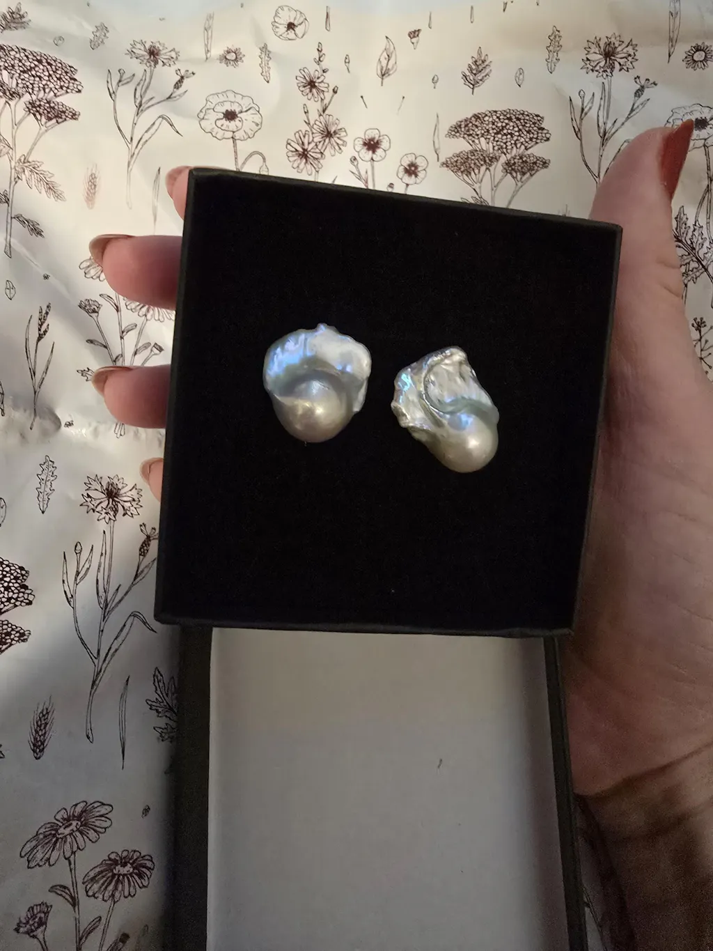 - Material: Sterling silver post with rhodium or 18k gold plating, baroque freshwater pearls